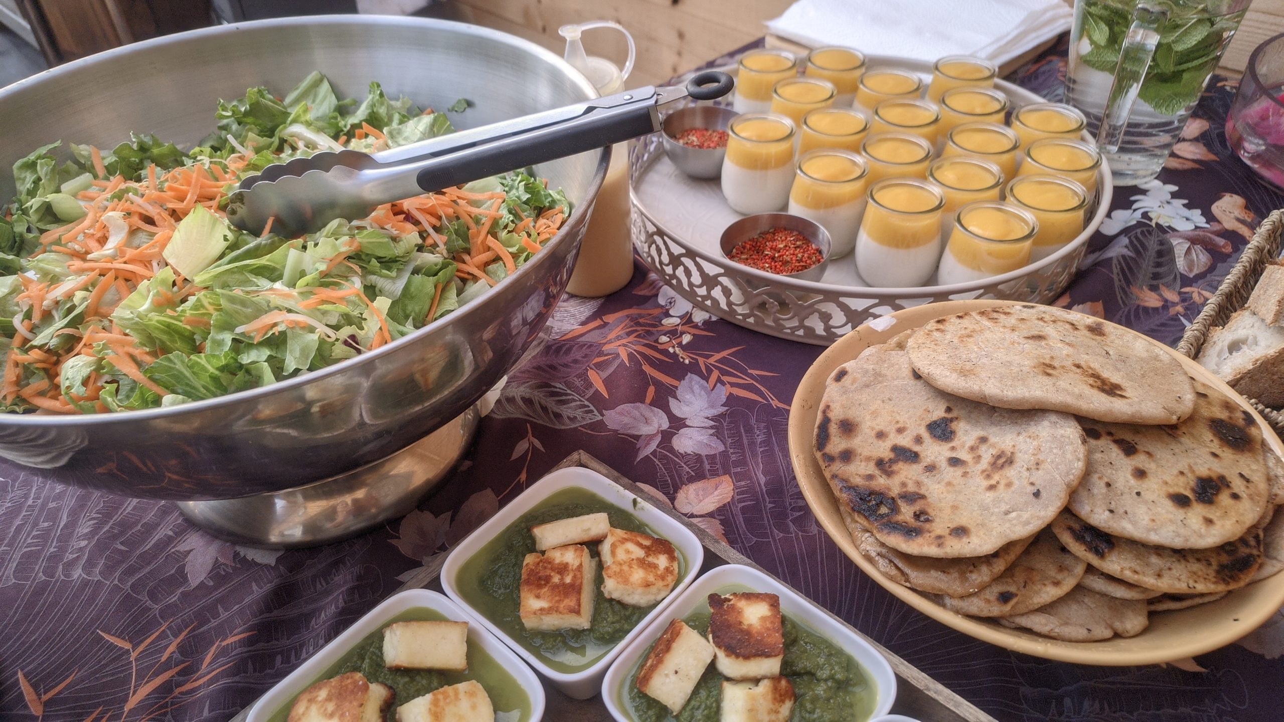 Nous portons une attention particulière sur les repas en offrant une cuisine saine et gourmande . Les repas sont préparés sur place et servis sous forme de buffet ou à l’assiette.Les plats inspirés de la cuisine du monde sont colorés et savoureux ,composés de produits issus du marché ,en favorisant les produits locaux