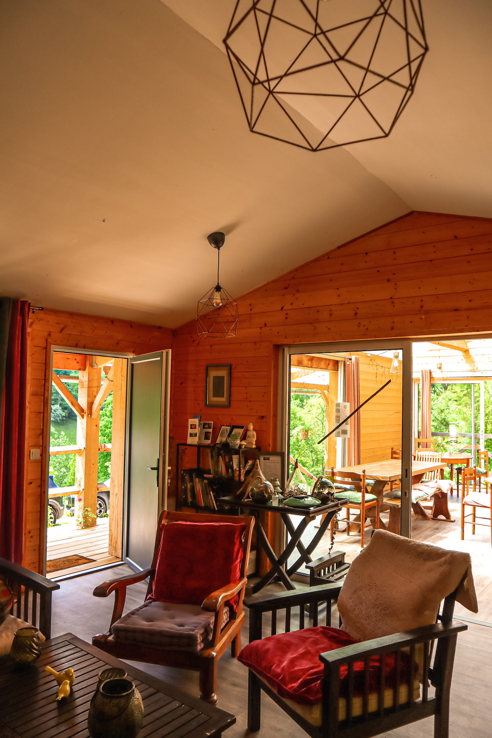 Cette salle possède un plancher de châtaigné massif, un plafond en bouleau, pour un confort naturel.